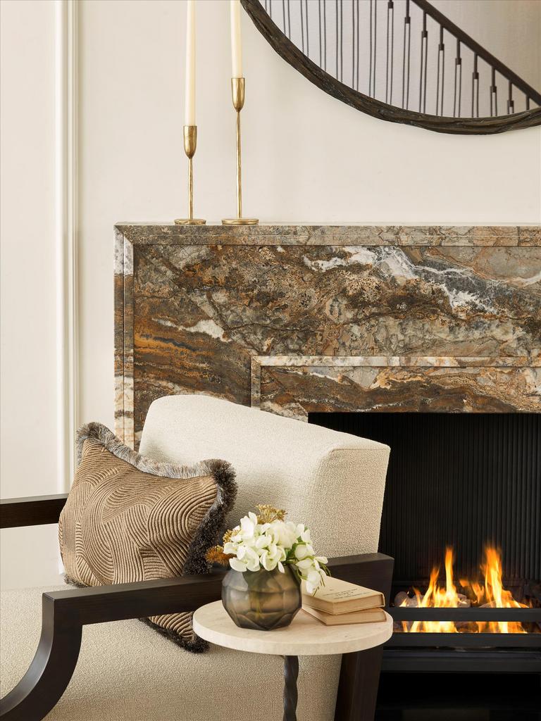 Upstairs, the principal bedroom suite includes a marble bathroom, a fully fitted dressing room, and a private west-facing terrace. There are two further bedroom suites, each with bespoke joinery and marble-finished bathrooms.