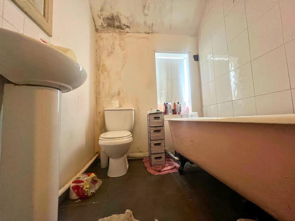 A stylish bathroom featuring a charming free-standing bath, offering a blend of character and comfort. A great space with potential for further modernisation.