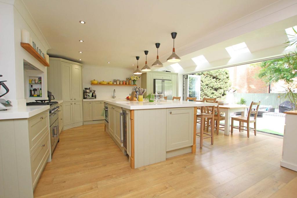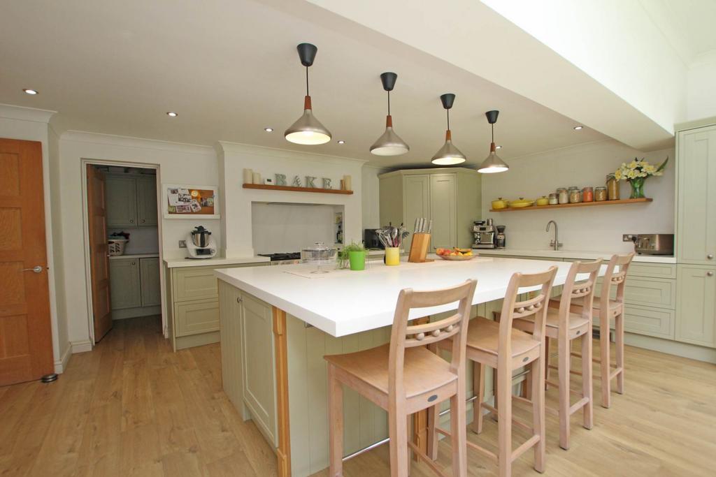 Deluxe fitted kitchen including many integrated features including instant hot water, a wine fridge, a warming drawer and spacious corner larder.