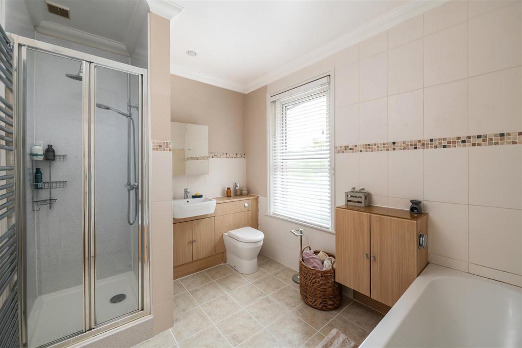 Upstairs, you'll find two generous double bedrooms, with the principal bedroom boasting twin windows, fitted wardrobes, and additional storage. The loft has been partially converted and is currently used as a guest space - perfectly positioned for a more comprehensive conversion should the next owners wish to maximise its potential. The bathroom is a generous space, well presented and offers a full bath and sperate shower for added convenience and practicality.