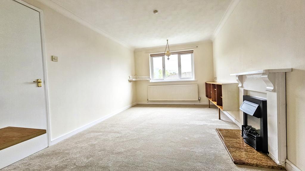 SITTING ROOM with fitted carpet, coving, front window with hill views, radiator, wood surround fireplace with marble hearth and electric fire. Shelf unit, TV aerial point, four power points, emergency pull cord and 'Caretech' emergency phone system.