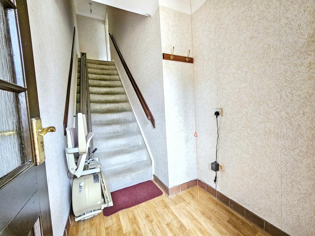 Part glazed front door to ENTRANCE HALL with vinyl flooring, power point and emergency pull cord. STAIRCASE with fitted carpet and 'Stannah' stair lift ascends to the first floor small landing with power point and glazed panelled door to:-