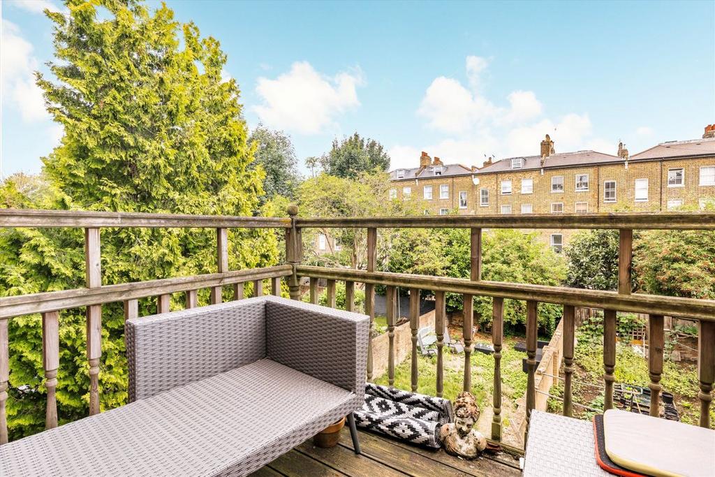 This three bedroom split level maisonette with wood floors and impressive high-ceilings throughout. The property has a large open plan kitchen/reception room with access to a private balcony.