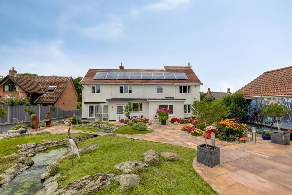 Perhaps the most striking element of this property is the breathtaking landscaped plot in which it resides. Designed with beauty and ease in mind, the gardens offer vibrant colour and striking features with minimal maintenance. Highlights include a serene rockfall water feature, a high-spec koi pond in the rear garden, and a front garden filled with hundreds of Peruvian Lilies that bloom from spring through to the first frosts. The use of premium artificial grass and an integrated weed barrier ensures more time can be spent enjoying the heated swimming pool with family and friends, rather than on upkeep.