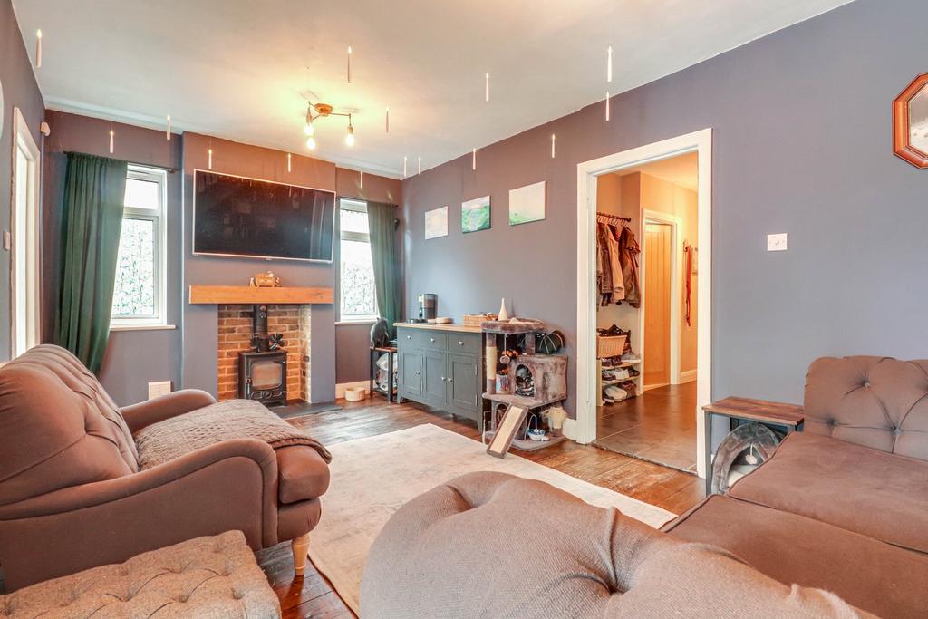 Double glazed windows side aspect. Stairs rising to the first floor accommodation. Feature fireplace with inset log burner. This room opens to :
