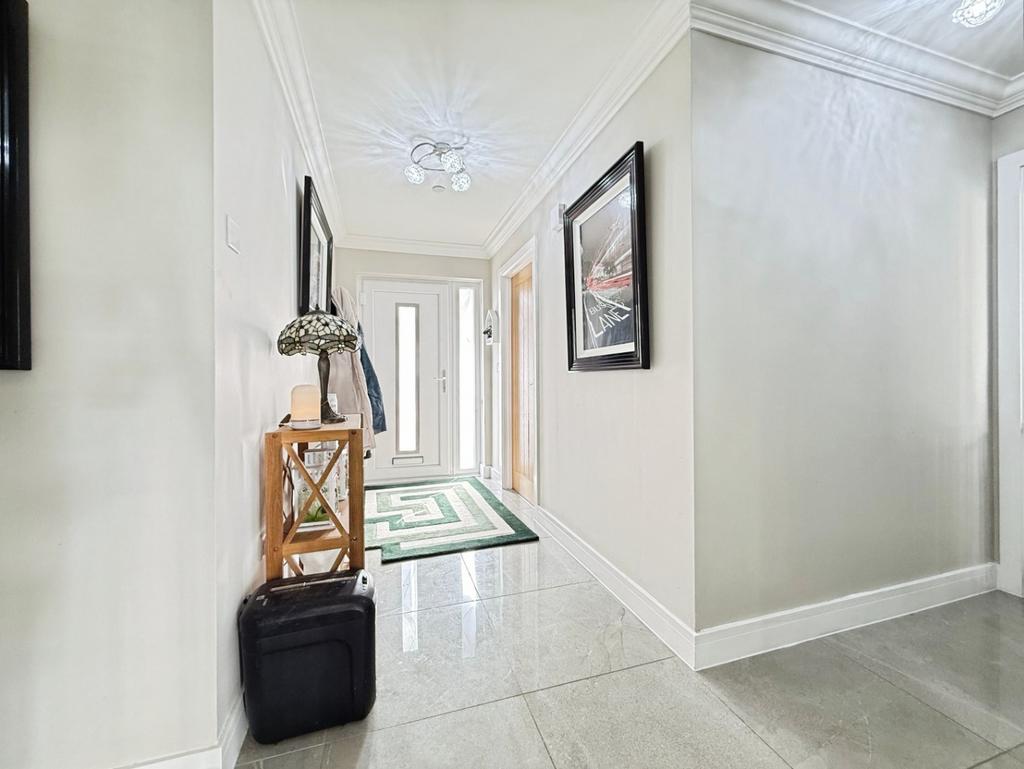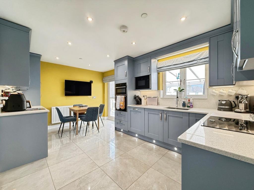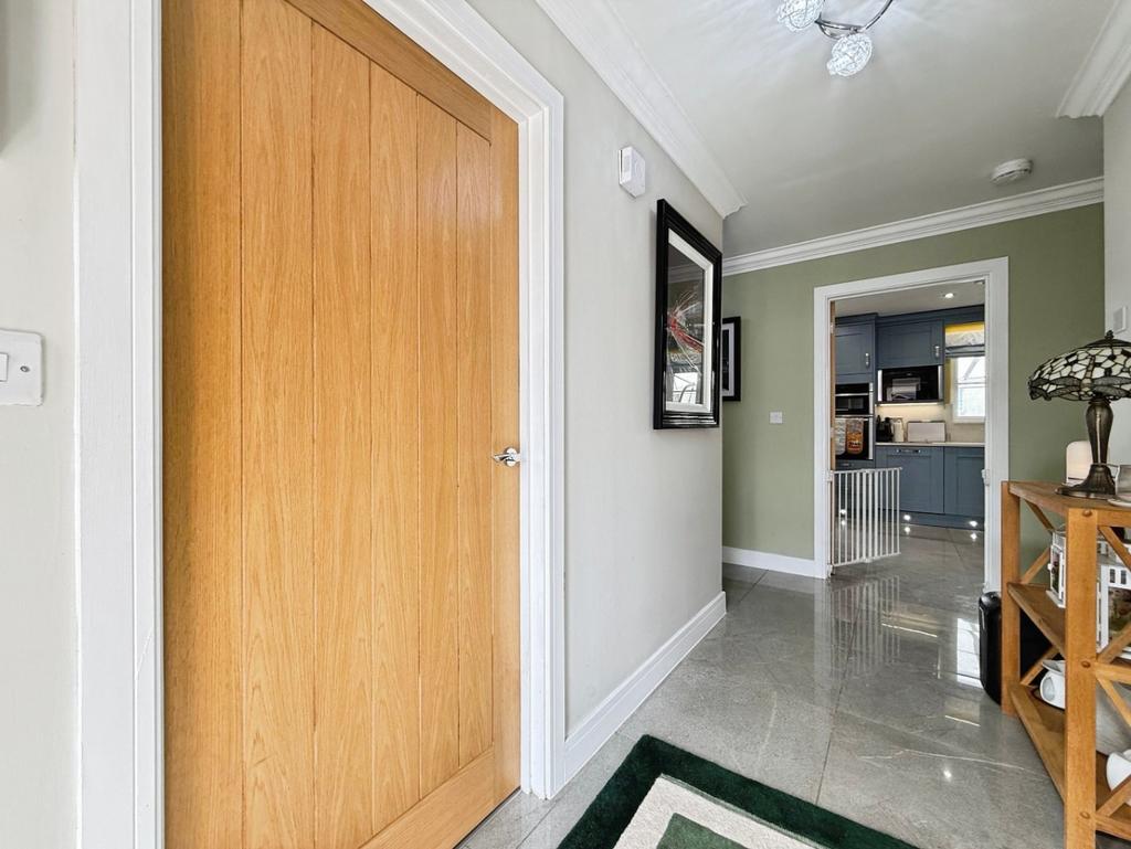Step inside to discover a modern interior boasting a spacious, bright hallway with high-gloss tiled flooring that guides you through the home. The brand-new kitchen is a chef's dream, featuring high-end granite work surfaces, integrated appliances, and a sleek, stylish design. Adjacent to the kitchen, a convenient utility room offers added practicality.