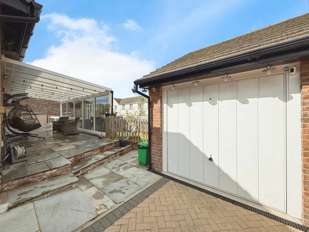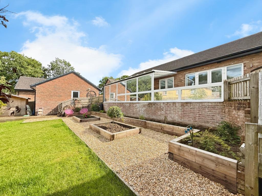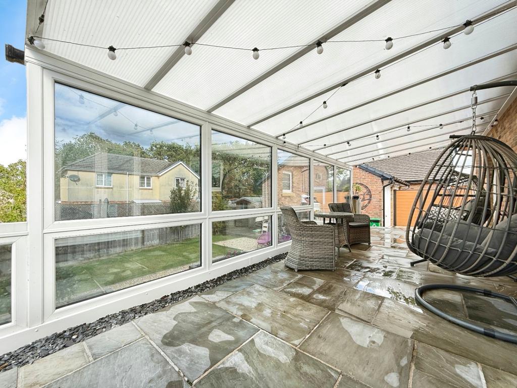The landscaped rear garden is a real highlight, offering a tiered design with a raised sun patio and terrace area, perfect for al fresco dining or simply soaking up the sun. A uPVC-covered seating area ensures you can enjoy the outdoors in comfort year-round, while the lower grassed area provides additional space for outdoor activities.