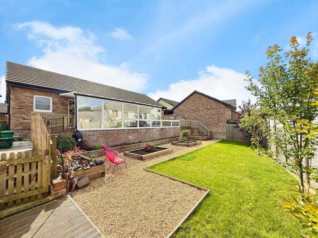 The bungalow's lounge is a comfortable and inviting space, perfect for relaxation or entertaining, while the master bedroom is a true retreat, complete with its own en suite. Two additional well-proportioned bedrooms and a luxurious four-piece main bathroom complete the accommodation, ensuring this home is perfect for both family living and hosting guests.
