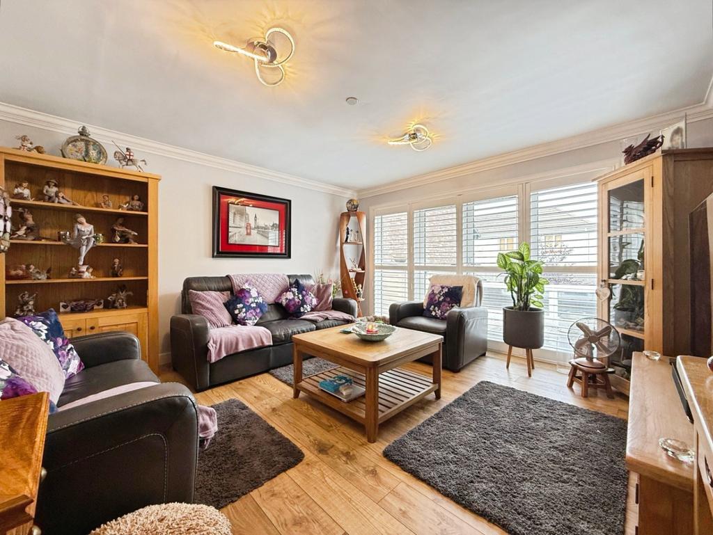 Wooden flooring, uPVC double glazed patio doors with side panels, fitted shutter blinds, radiator, coving to ceiling.