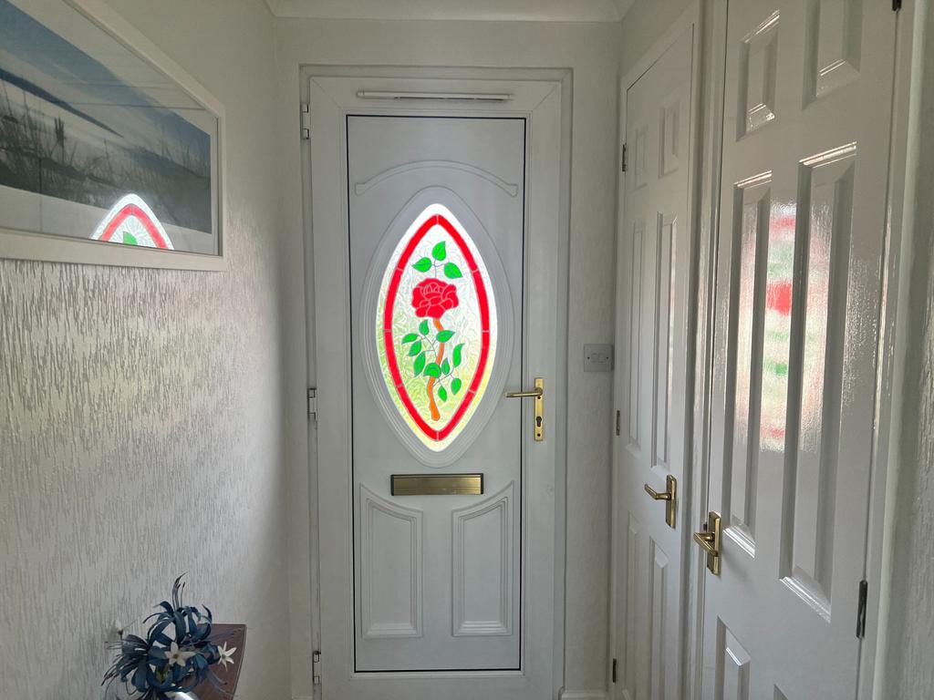Enter the property through a upvc double glazed door into a welcoming hallway tastefully decorated in neutral tones. The space features a two door cupboard, wood effect laminate flooring, central heating radiator, loft access and ceiling light and coved ceiling.
