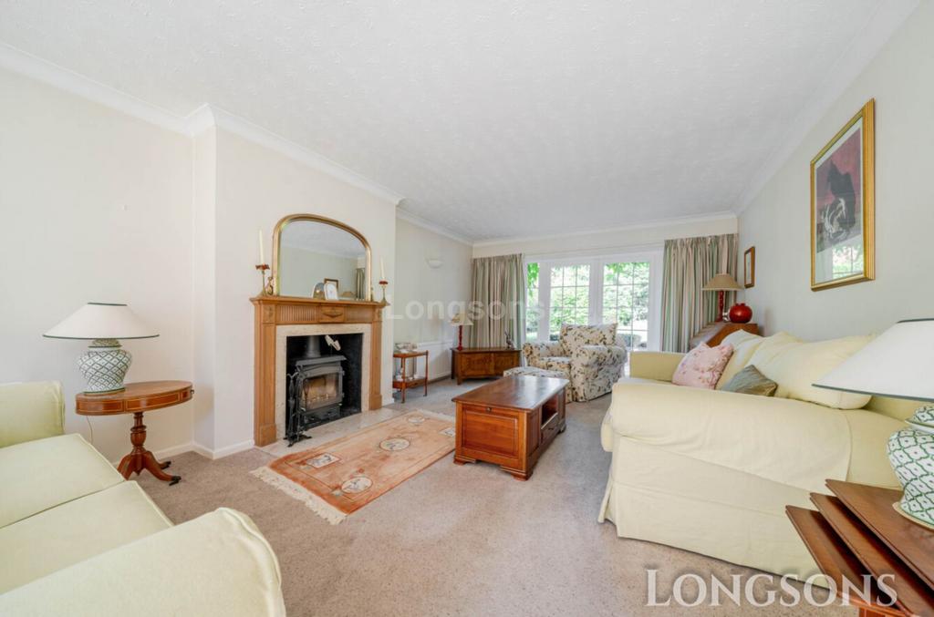Feature fireplace with inset log burning stove, UPVC double glazed walk-in bay window to front, UPVC double glazed French doors opening to rear, two radiators.