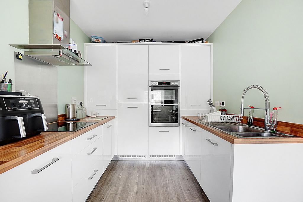 The kitchen is fitted with integral appliances, including a fridge freezer & AEG oven and the defined dining space is next to the window at the front, the living room is at the rear of the home with sliding doors that lead out onto the garden.