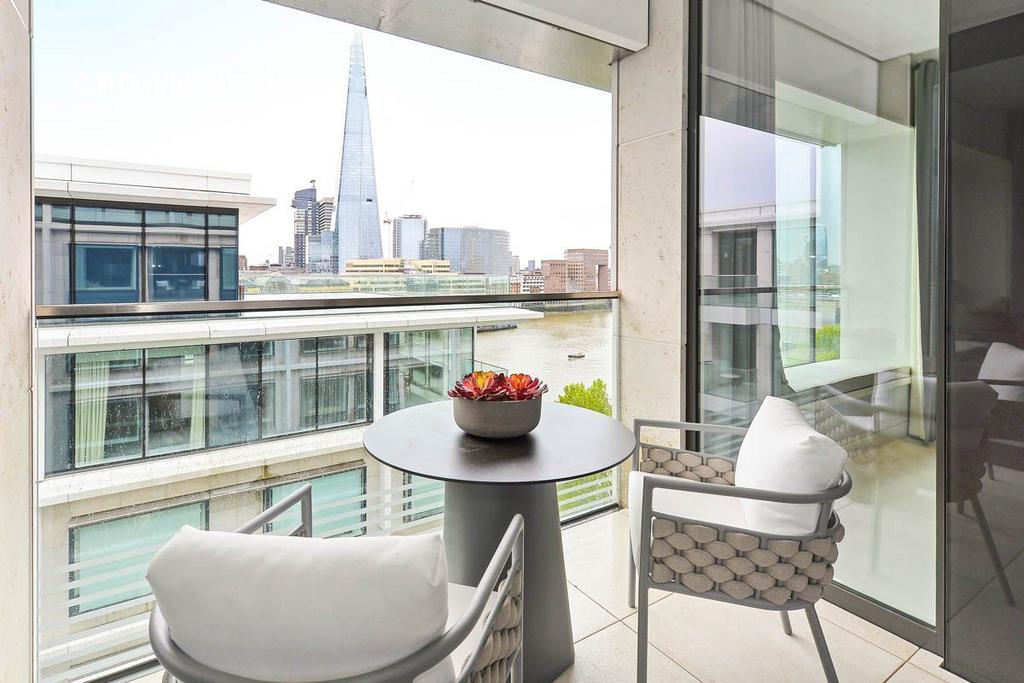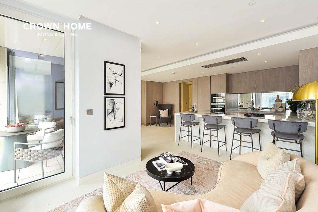 This 8th‑floor, south‑facing riverfront apartment offers outstanding style, space, and light. Designer‑furnished throughout, it features an open‑plan Italian kitchen with stone worktops, breakfast bar, wine fridge, and premium integrated appliances. The spacious living and dining area opens onto one of two private balconies, perfect for relaxing and enjoying the view of the river and Shard.