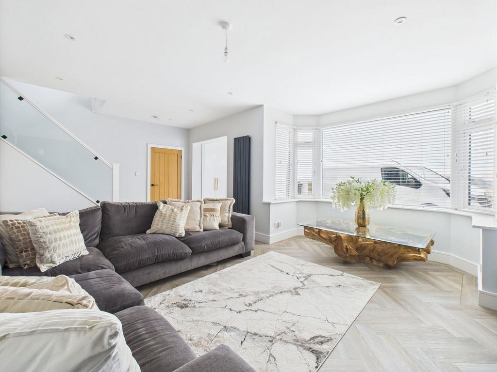 Internal The front door opens into a welcoming entrance lobby, offering ample space to hang coats and store footwear before stepping further inside. At the front of the property, the bay-fronted living room enjoys a sunny southerly aspect and features a beautifully crafted built-in storage wall—perfectly designed to accommodate a wall-mounted television and an electric fire, while providing generous hidden storage. Just off the hallway on the ground floor is a versatile room, ideal as a home office but equally suited for use as a guest bedroom. To the rear of the house lies the impressive open-plan kitchen and dining area. This expansive space, measuring approximately 30'8" x 15'0", is cleverly zoned to feel like two distinct areas while retaining an open, flowing layout—artfully divided by a striking solid marble breakfast bar. The kitchen itself is fitted with sleek, handleless cabinetry in a dark modern finish, topped with elegant marble worktops for a polished look. A full suite of integrated appliances includes a dual electric oven, induction hob, microwave, dishwasher, and fridge freezer—offering both functionality and style. Spanning the entire width of the rear wall, bi-folding doors seamlessly connect the indoor space to the rear garden, making this area the ultimate hub for entertaining. A practical utility room and a convenient downstairs W/C are discreetly positioned just off the kitchen. Upstairs on the first floor are four generously proportioned bedrooms. Three of these can comfortably accommodate king-size beds along with additional furnishings, while the fourth is perfect for a generously sized single bed. The contemporary family bathroom features a stylish three-piece suite, including a bath with overhead shower, a toilet, and a shaker-style vanity unit topped with solid marble. A unique feature of this level is the south-facing balcony at the front of the property, accessed via bi-folding doors. This elevated outdoor space offers uninterrupted panoramic views of the sea—an exceptional spot to enjoy sunrise or relax with a coffee. The top floor is dedicated to the stunning master suite, a dual-aspect sanctuary measuring 16'7" x 23'2". Three south-facing Velux windows frame breathtaking sea views and fill the room with natural light throughout the year. The suite also includes a spacious walk-in wardrobe with access to additional eaves storage. The luxurious en-suite bathroom is appointed with a large walk-in shower, a toilet, and a shaker-style vanity with a solid marble surface—adding a refined finishing touch.