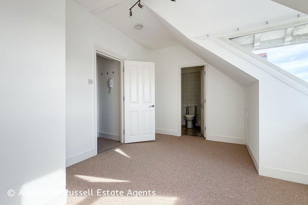 Inside, there’s an open plan kitchen and living area with ample storage, fitted units and space for dining or home working. The double bedroom offers a peaceful retreat and benefits from its own en-suite bathroom. The property also includes access to a handy second-floor storage room and comes with a share of the freehold.