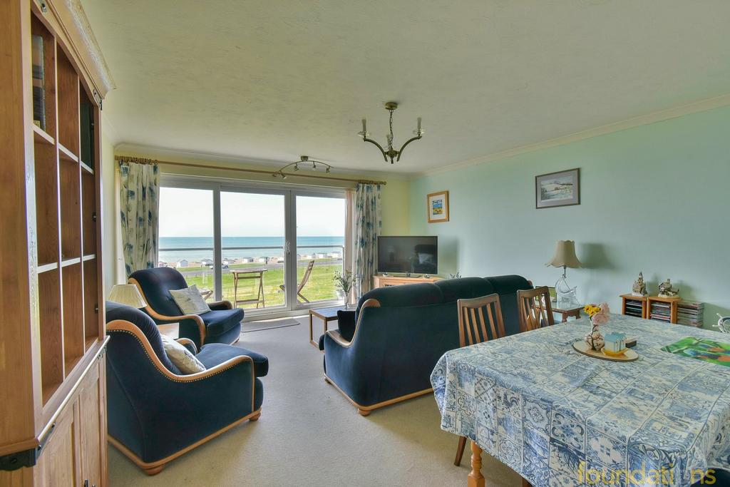 A bright, spacious and well presented THREE BEDROOM second floor purpose-built SEAFRONT apartment located in a well looked after block Merton Court within Sutton Place. The accommodation comprises; communal entrance with stairs rising to the second floor, private entrance hall, 17' lounge with sliding doors leading to the south facing balcony with exceptional views towards the sea and over the green, modern kitchen/dining room with door also leading to the balcony, three bedrooms, shower room with WC and additional WC/cloakroom. Further benefits include; GARAGE EN-BLOC, share of freehold and NO ONWARD CHAIN. EPC - C.