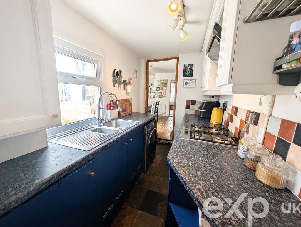Set back from the path by a courtyard front garden, there a vintage floor tiles leading you to the front door. The living room is a good size with a feature fireplace, bold feature wall and exposed floor boards. This theme continues into the separate dining room, which is flooded with light from the rear garden. The kitchen enjoys integrated appliances including hob, oven and extractor whilst still has space for a freestanding washing machine. The bathroom is also on the ground floor and offers a modern white suite.