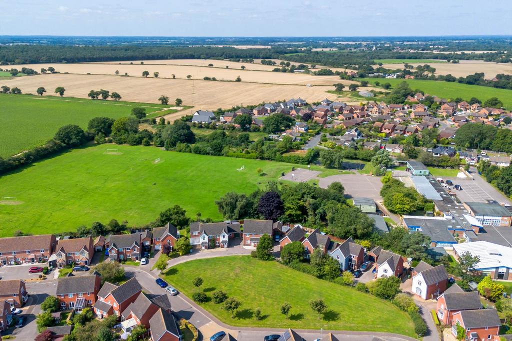 Set within the vibrant market town of North Walsham, this attractively presented four bedroom detached home enjoys a superb position overlooking a peaceful green to the front and backing onto school playing fields, providing a tranquil and private setting. The property is arranged over two floors, offering spacious accommodation that includes two generous reception rooms, a large conservatory extension, and a modern kitchen with direct access to the garden and integral garage.