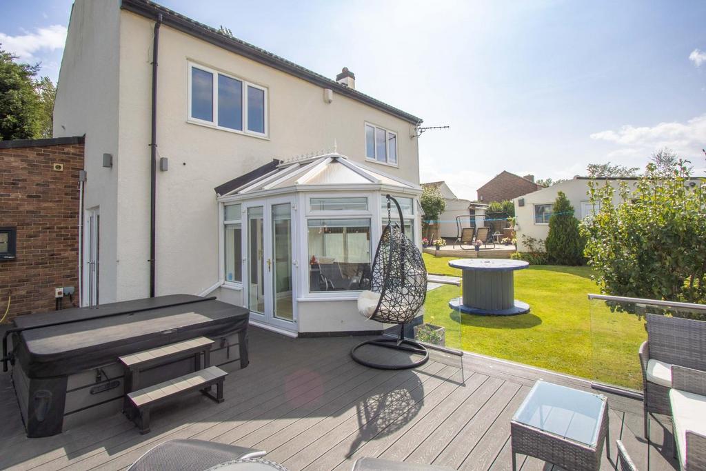 Flowing seamlessly to the rear, a bright and inviting living room offers the perfect haven for cosy family evenings or lively gatherings. From here, double doors lead into a well-proportioned dining room, which in turn opens onto a delightful conservatory. Bathed in natural light and boasting sweeping views over the garden and open countryside, this is a room you’ll never want to leave, and it opens to the composite decked patio & hot tub. Completing the ground floor is a practical utility area paired with a stylish shower room.