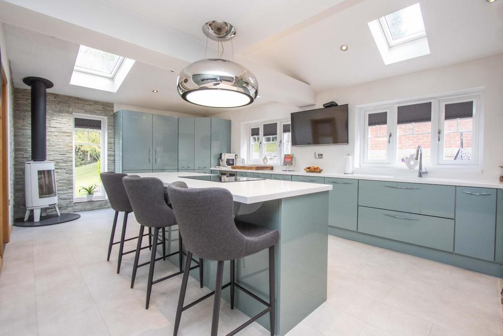 Step inside this remarkable family home and you’re greeted by a charming entrance porch, setting the tone for what lies beyond. At its heart is a show-stopping kitchen — the true hub of the home — where style meets practicality. Whether you’re whipping up a family feast, entertaining friends, or simply unwinding with a glass of wine by the feature multi-fuel burner, this space is sure to impress. Sleek, modern integrated appliances, generous storage, and thoughtful design make it as functional as it is beautiful.