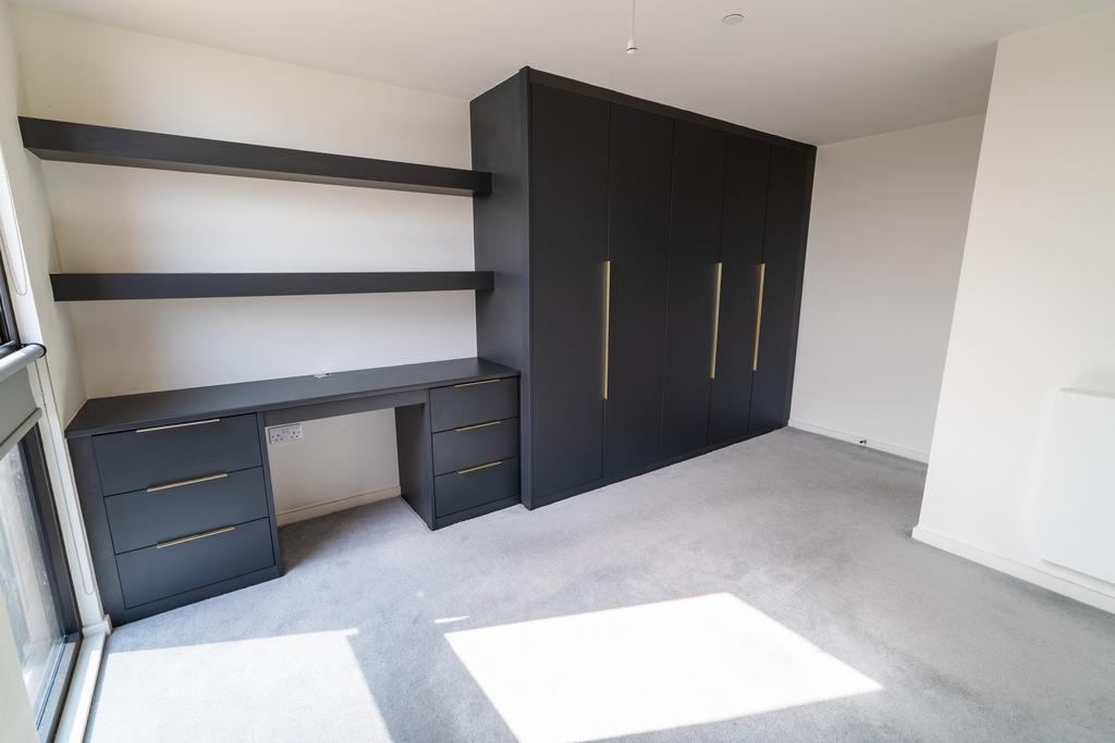 The double bedroom continues the theme of luxury with fitted wardrobes and a built-in desk/dressing area – the perfect home working setup with inspiring views. The bathroom is finished to a high standard with contemporary tiling, bath and shower.