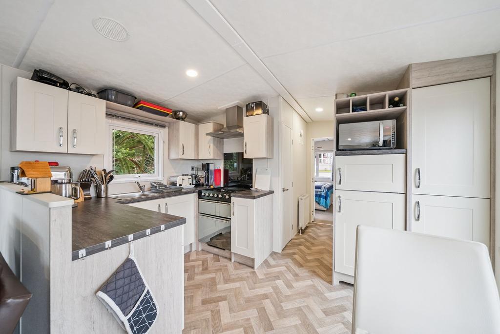 Designed for comfortable coastal living, the home features a bright, open plan layout with a well equipped kitchen which has wall mounted and counter level units as well as an oven and hob. From the kitchen is a large open plan lounge/dining area with patio doors leading out to a private decking area perfect for relaxing and taking in the stunning scenery and the fantastic views.