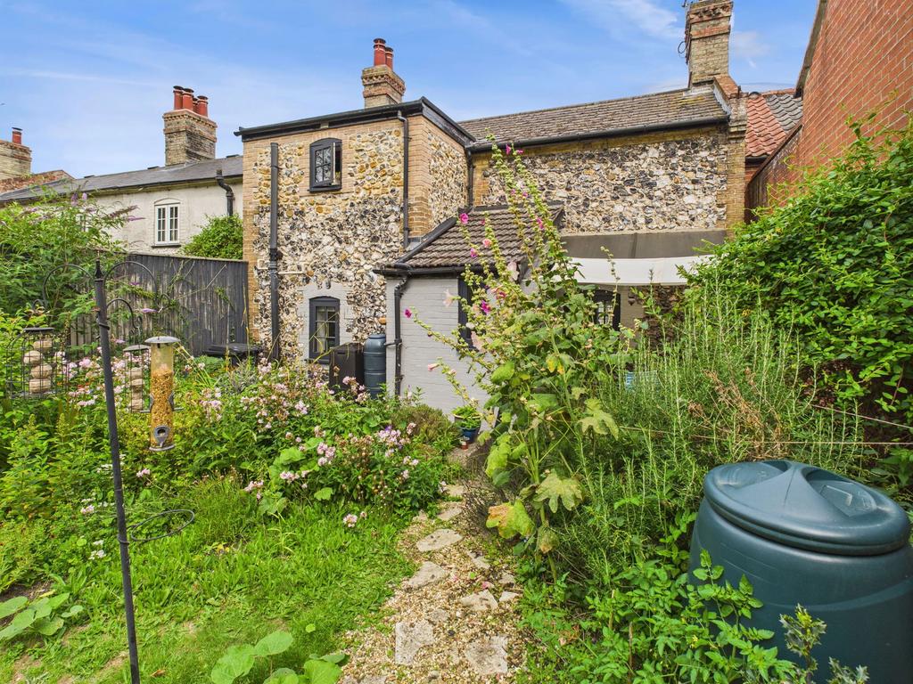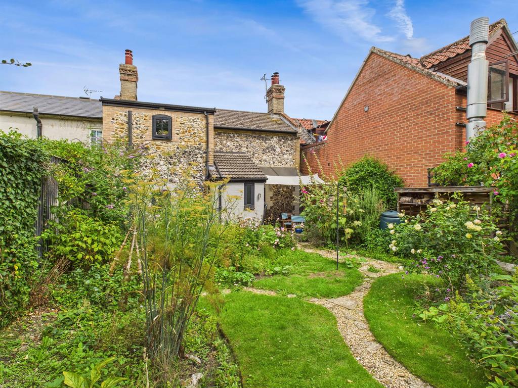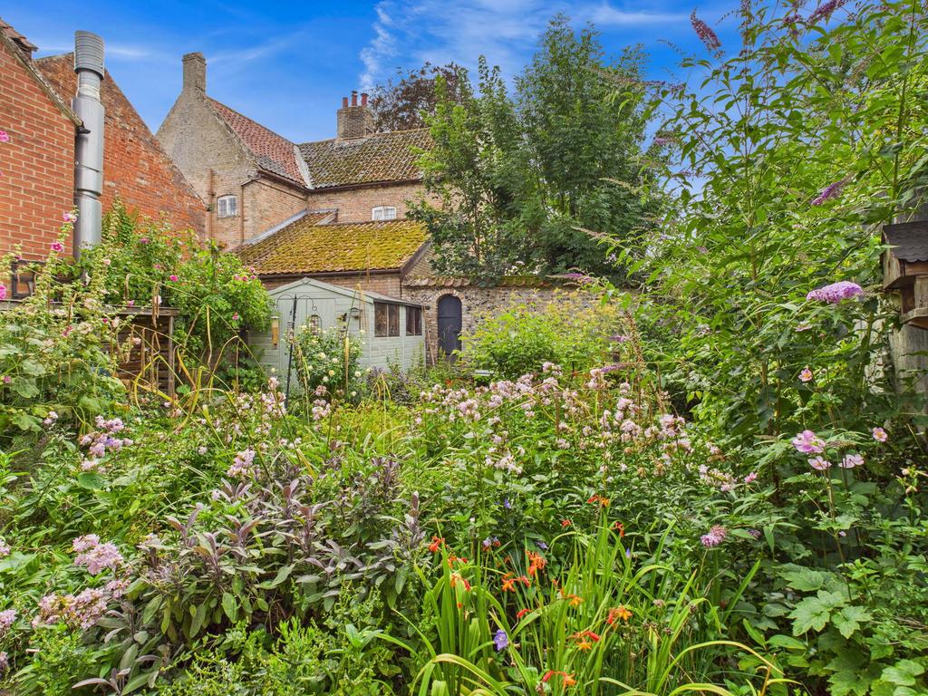 Outside, a pretty, well-tended garden provides the perfect setting for relaxing or entertaining, well stocked with mature planting and a private covered seating area.