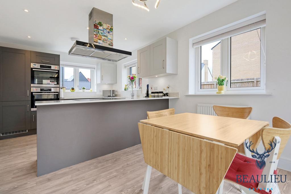 Inside, the property offers an impressive and well-balanced layout, with a welcoming entrance hall leading to bright, spacious living areas. The dual-aspect living room enjoys French doors to the garden, creating a perfect space for relaxation and entertaining. A separate dining room provides a formal setting for family meals and celebrations, while the modern kitchen/breakfast room is thoughtfully designed with plenty of storage and workspace, complemented by a useful utility room and ground floor WC.