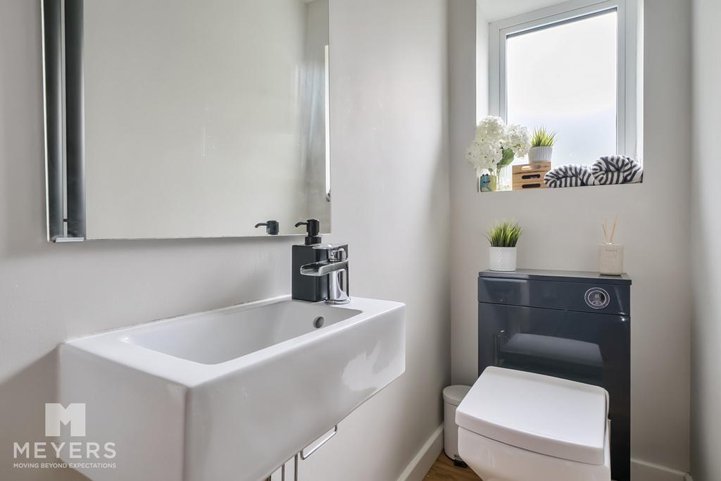 On the first floor, four good sized bedrooms are arranged off a central landing. The main bedroom benefits from a built in wardrobe and a contemporary en suite shower room, while the remaining rooms are served by a spacious family bathroom featuring a jacuzzi corner bath, twin vanity sinks, and modern fittings throughout.