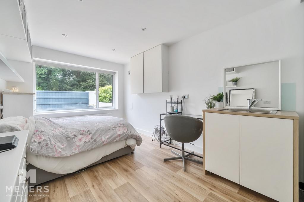 The sleek kitchen has been carefully designed to maximise both style and usability. It includes a generous range of high gloss cabinetry, Corian work surfaces, integrated appliances, and a substantial breakfast bar. A second set of aluminium bi fold doors opens directly onto the garden, making this an ideal space for entertaining or everyday family life.