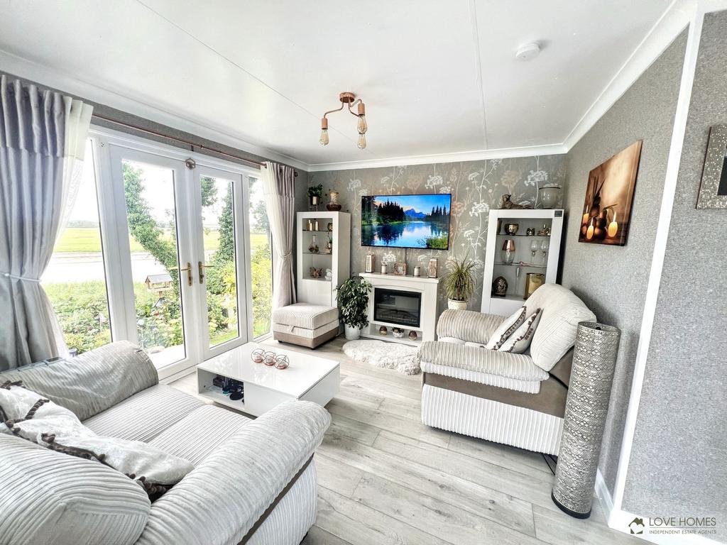 The Lounge has the most breath taking views overlooking the River Wyre. There are white upvc double glazed french doors with side windows which open out onto the paved patio with stunning sunsets and an array of wildlife to catch site of. The flooring is grey oak effect laminate flooring and feature a modern electric fireplace with surround. There is a wall mounted electric heater, ceiling light, coved ceiling, television point, upvc double glazed window and upvc double glazed door opening into the upvc double glazed conservatory.