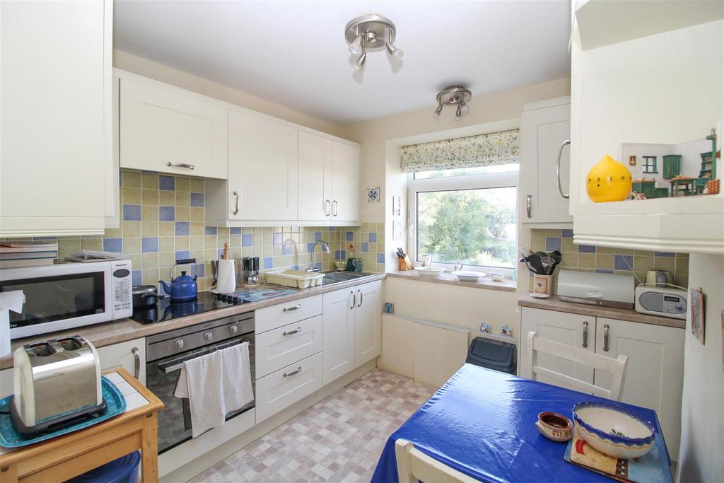 Range of base and wall units. One and a half bowl sink with drainer. Indesit oven and induction hob. Space for fridge freezer. Window to rear overlooking the Crouch bowling green. Wall-mounted Worcester gas combination boiler.