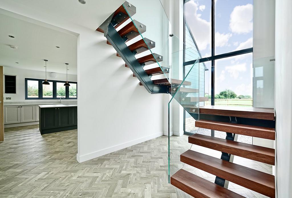 Wonderful hardwood ‘floating’ staircase rising to the first-floor galleried landing with glass balustrade.