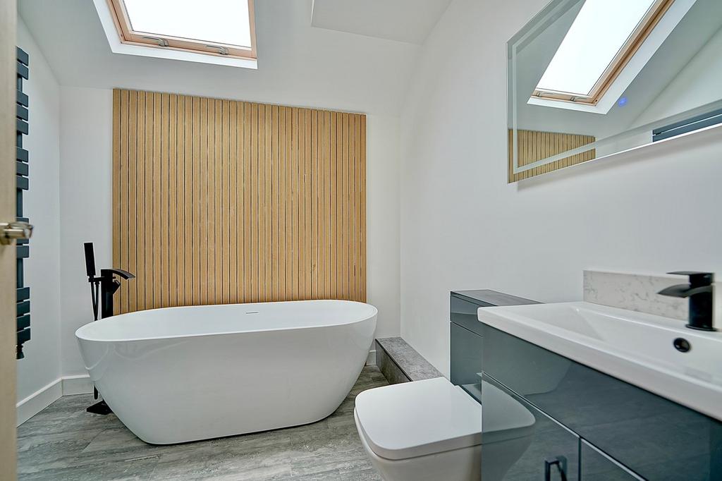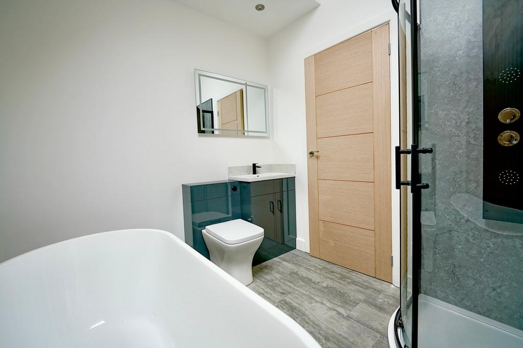 The two remaining bedrooms with both accommodate a double bed, and the family bathroom is superbly appointed with suite comprising oval bath with free-standing mixer tap, double quadrant shower enclosure with multi-jet shower, vanity unit with washbasin and storage below and WC with concealed cistern.