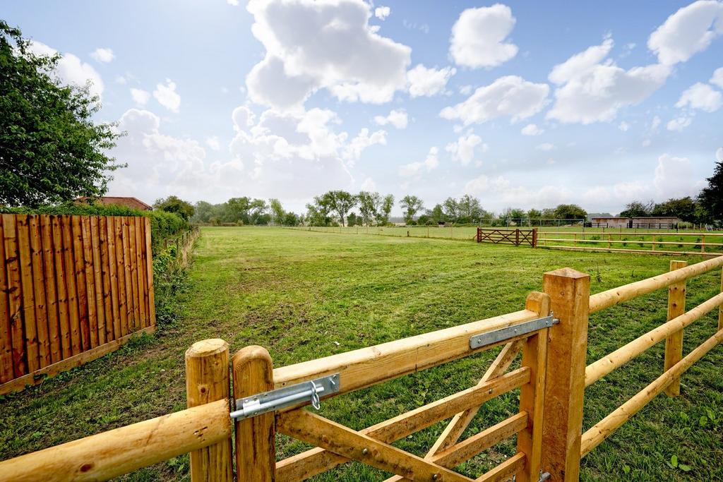 There are formal gardens to the side and rear with a fine expanse of lawn and full width terrace with porcelain tiles. The garden is enclosed on three sides by close-boarded fencing, with post and rail to the rear boundary allowing uninterrupted views over the paddock and open countryside beyond.