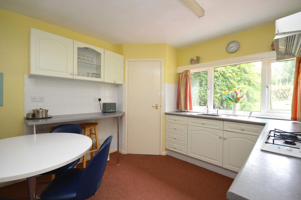 UPVC double glazed window overlooking the rear garden. Matching wall and base units with stainless steel sink. Breakfast bar area, radiator, space for a washing machine. Electric fan oven, gas hob and an extractor fan. Pantry cupboard in the corner of the room housing the fridge and the freezer (not integrated appliances).