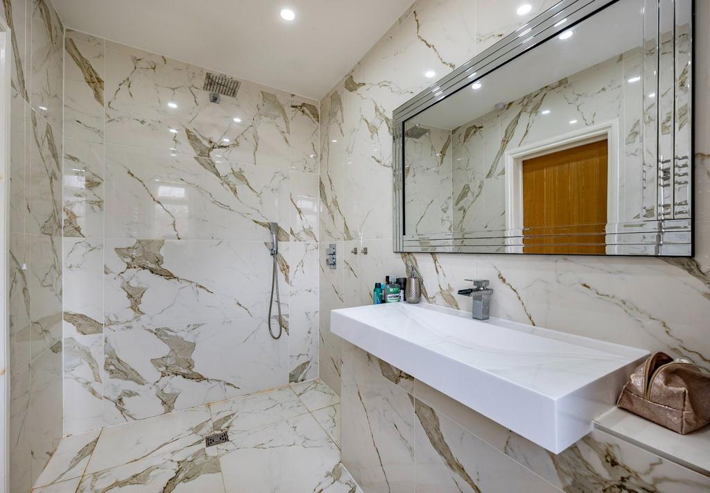 Upstairs, the first floor boasts three double bedrooms, including a generous principal bedroom with en-suite, along with a separate family shower room. The top floor hosts a fourth double bedroom with its own en-suite, ideal for guests or older children.