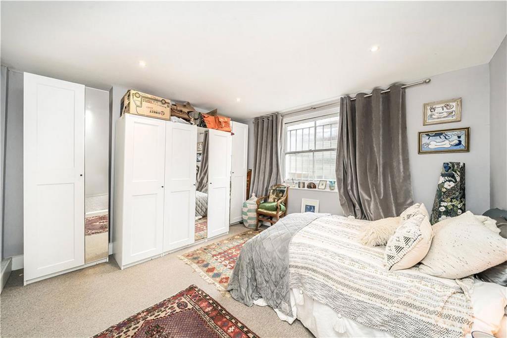 The property is set over two floors and has a bright and spacious double reception room with high ceilings, three bedrooms, two bathrooms and a balcony leading onto a private courtyard garden. It would make an excellent home to live in.
