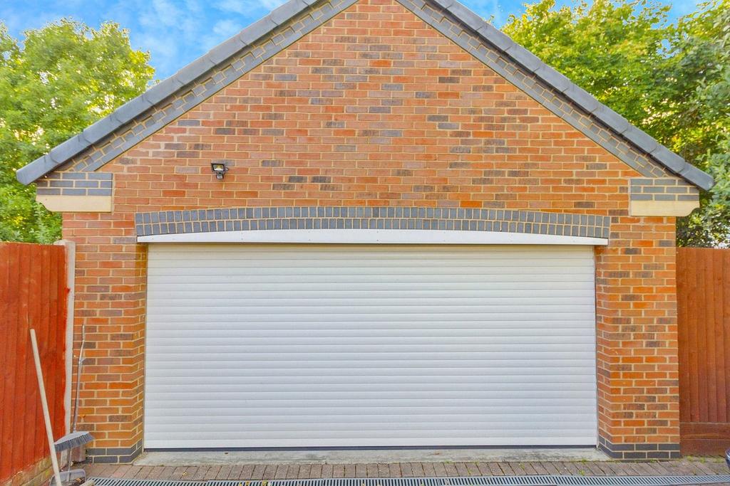 To the front is a lawned garden with shrubs and a paved pathway to the entrance door, and to the side there is ample off-road parking space and access to a large detached double garage with an electric roller door, power, lighting and a pedestrian door to the side where there is a fenced lawned garden with shrubs, mature trees and block paving. To the rear is a beautifully presented and spacious lawned garden with a stone paved patio part of which is sheltered by the first floor balcony which has stair access, an abundance of established plants, shrubs and trees and wooden fencing to the perimeter.