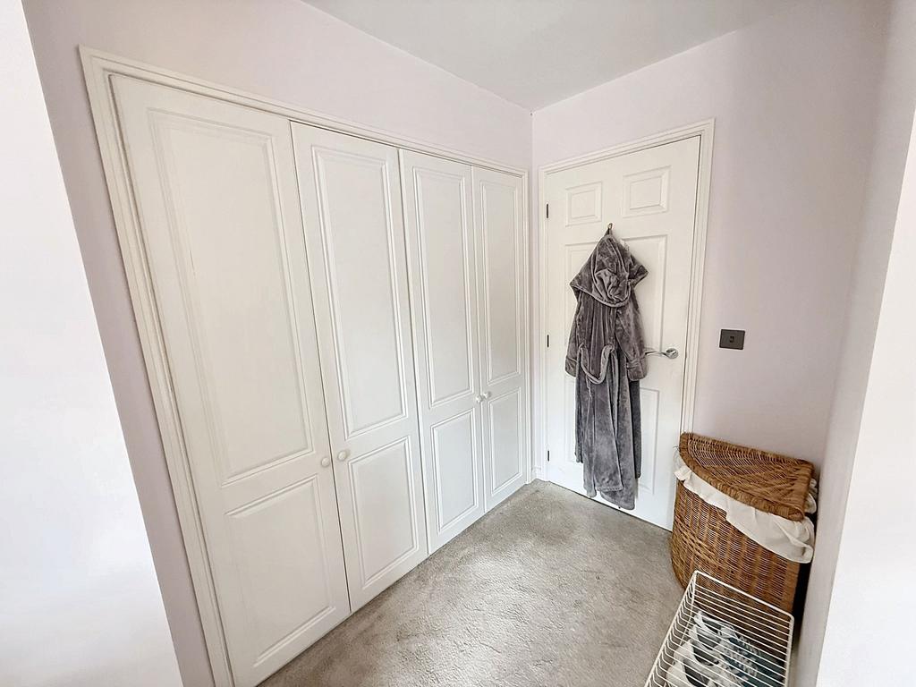 The landing provides access to all four bedrooms and the family bathroom, and includes a large built-in storage cupboard. There is also loft access, and the space is finished with carpeted flooring.
