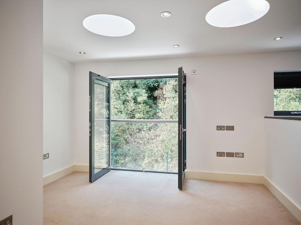 Open plan living space with lightwells and a juliet balcony. Ample space for dining table and sofa.