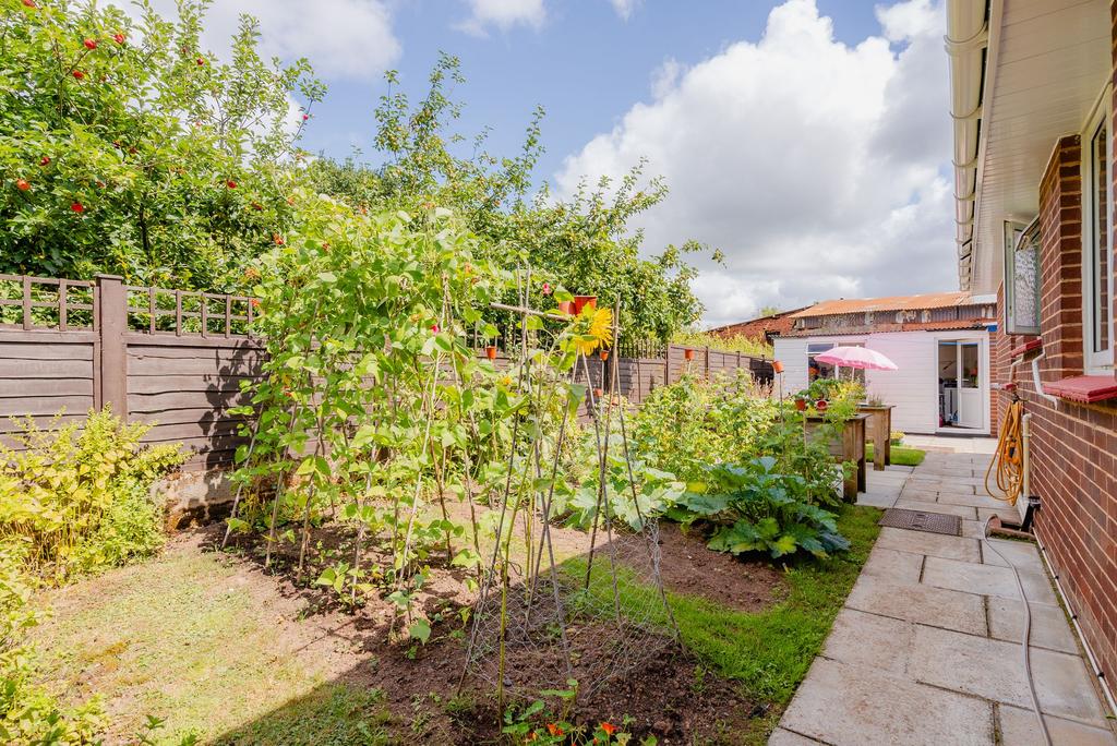 Outside, the plot extends to 0.3 acres and with two driveways in, it offers a great deal of flexibility. The main drive gives access to gated off-road parking and leads to the garage, whilst the second drive gives additional parking for a motorhome or caravan should it be required. The gardens are well established with colour and cover during the spring and summer. There’s room to grow too with raised beds at the rear providing vegetable beds. The lawns and paving areas have the countryside views too. To the bottom of the garden, former stables (now workshop and stores) give additional hobby or storage space and although these will need some attention, the fundamentals (and footprints) are there.