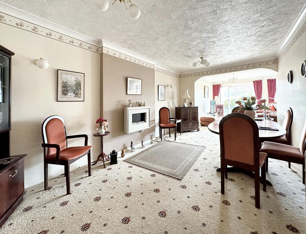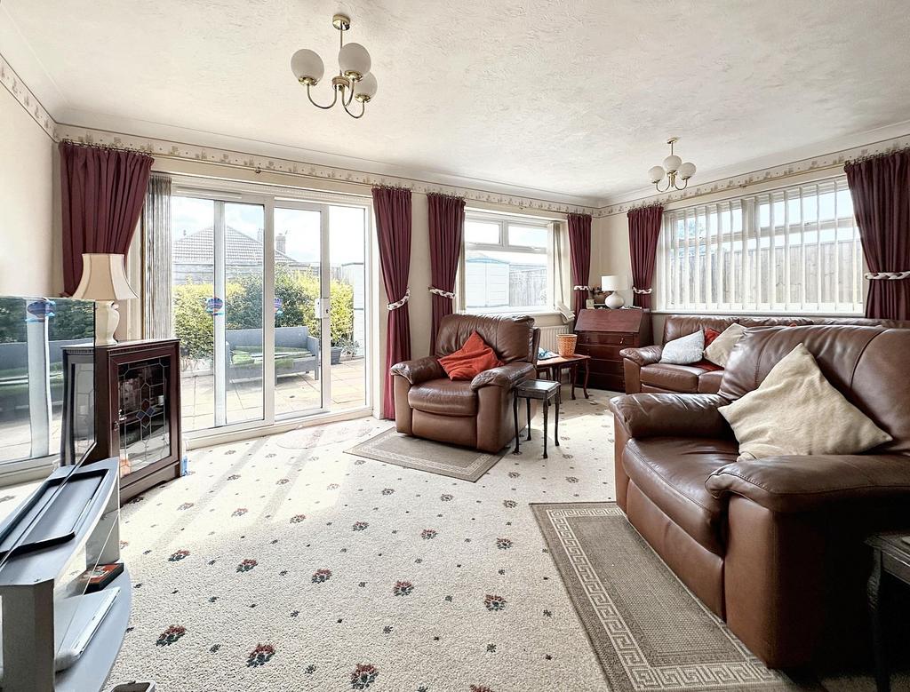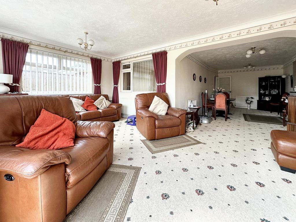 Upon entering the property, residents are greeted by a spacious entrance hall with a door to the integral garage. A particular feature of the bungalow is the extended inviting extended lounge and dining room, now being 32 in length and a great area to entertain, offering ample space for both living and dining areas. This expansive room seamlessly flows into the garden, creating a bright and airy ambience. The modern kitchen is thoughtfully designed with base cupboards and drawers, matching wall units and space for appliances.