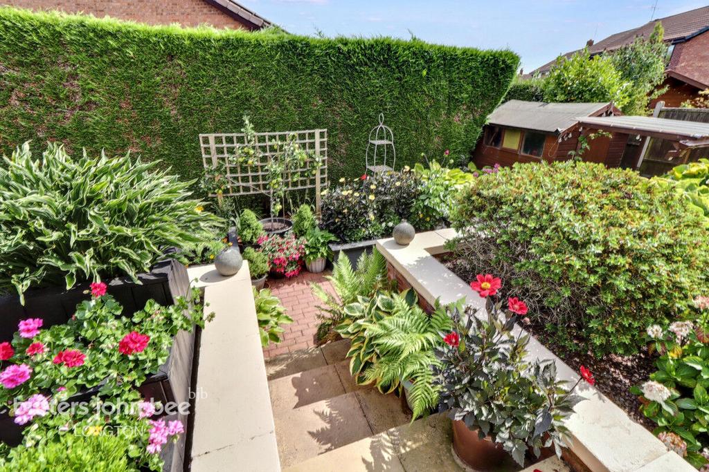 A separate dining room offers additional space for entertaining, while a downstairs WC adds convenience. The well-proportioned kitchen leads through to a utility area, which in turn opens into the garage – currently used as a further reception room but easily converted back to a double garage if desired. From here, bifold doors open directly to the rear garden. The large conservatory spans the back of the property, enjoying uninterrupted views over the low-maintenance rear garden, complete with a small fish pond and the benefit of being not overlooked.