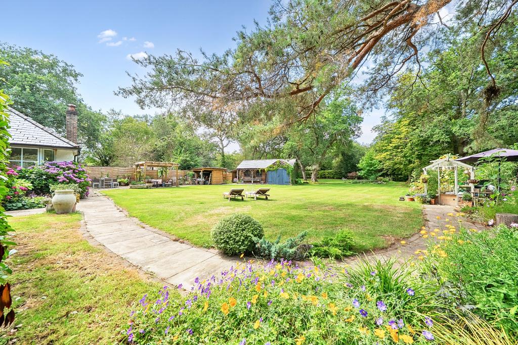 Positioned within this unique setting, nestled between open fields and serene woodland, this distinctive residence combines the peace of the countryside with elegant, versatile living, offering a perfect retreat just a short distance from both Woking and Guildford.