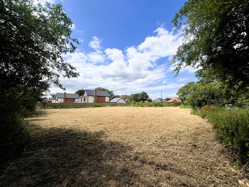 The development land is relatively flat grassland with ditches located on the north-east boundary and again on the southern boundary with a small pond located at the bottom of the development.