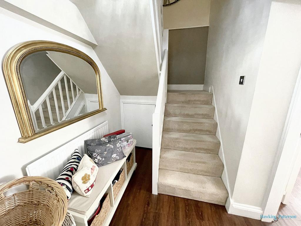 Karndean flooring, radiator, understairs cupboard with continued Karndean flooring.