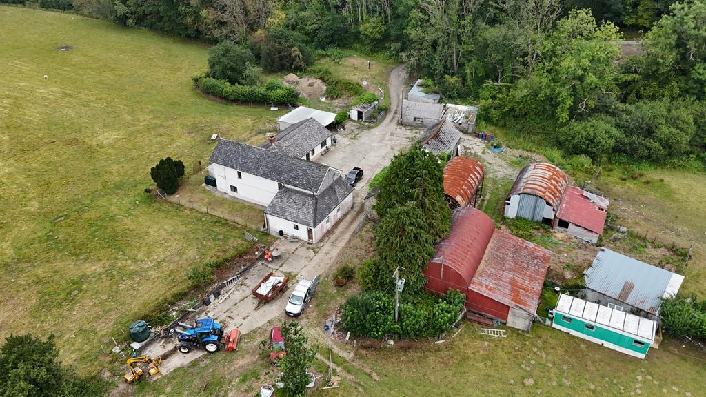 3 Bay Dutch Barn . 25’ x 20’ block built Implement/Fodder Store Shed. Aged Static Caravan with electric and water connected and separate drainage system. Spacious yard to rear of house/cottage.