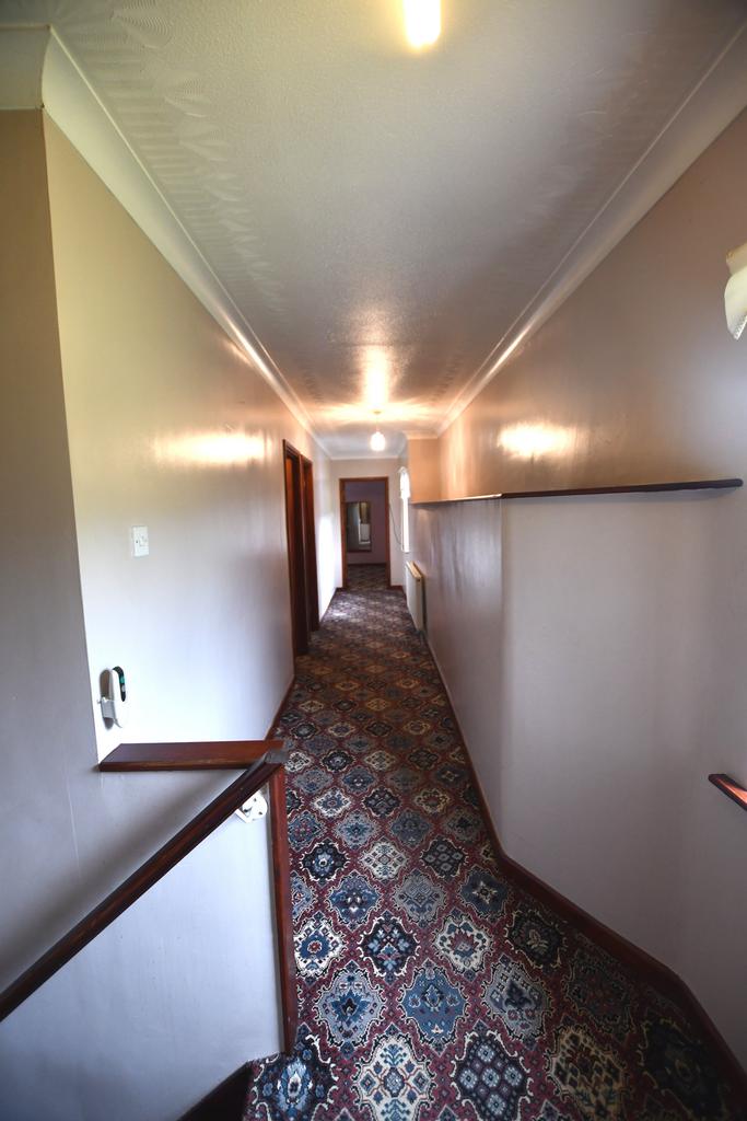 ‘T’ shaped Hallway with timber flooring, radiator, double power point, stairs to first floor, doors off to: