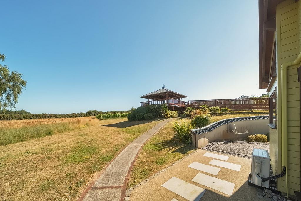 Nature is celebrated throughout the estate. Selected areas of the garden have been purposefully left wild to encourage biodiversity, with flourishing wildflowers attracting pollinators and enhancing the property’s serene atmosphere. A thriving orchard offers a variety of fruit trees, providing both beauty and abundance.